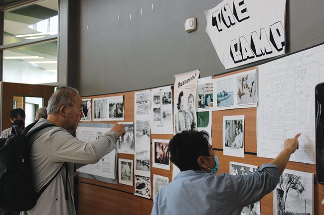 One of those local supporters is Crystal City High School history teacher Ruben Salazar, who inherited an exhibit of photos that he presented at the pilgrimage. Pilgrimage attendees carefully peered at the images, trying to find familiarity in the faces of then-Crystal City incarcerees.